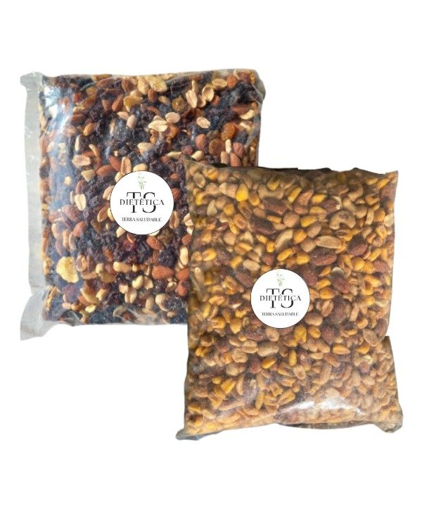 1k Mix energia: Nueces, almendras, maní, pasas rubias y morenas.